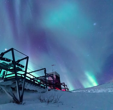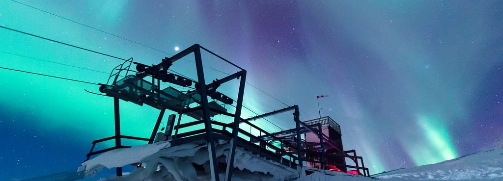 Subiremos en teleférico hasta el observatorio, atravesando los valles que antiguamente dibujaban las pistas de esquí de la estación. Allí veremos un documental sobre las auroras, aprenderás toda la ciencia que hay tras ellas y, por supuesto, disfrutaremos del espectáculo desde los miradores de la propia estación.