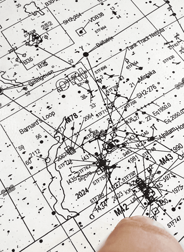 Las cartas celestes son mapas del cielo extremadamente precisos en los que se representan estrellas, constelaciones y objetos de cielo profundo como galaxias, nebulosas y cúmulos estelares.